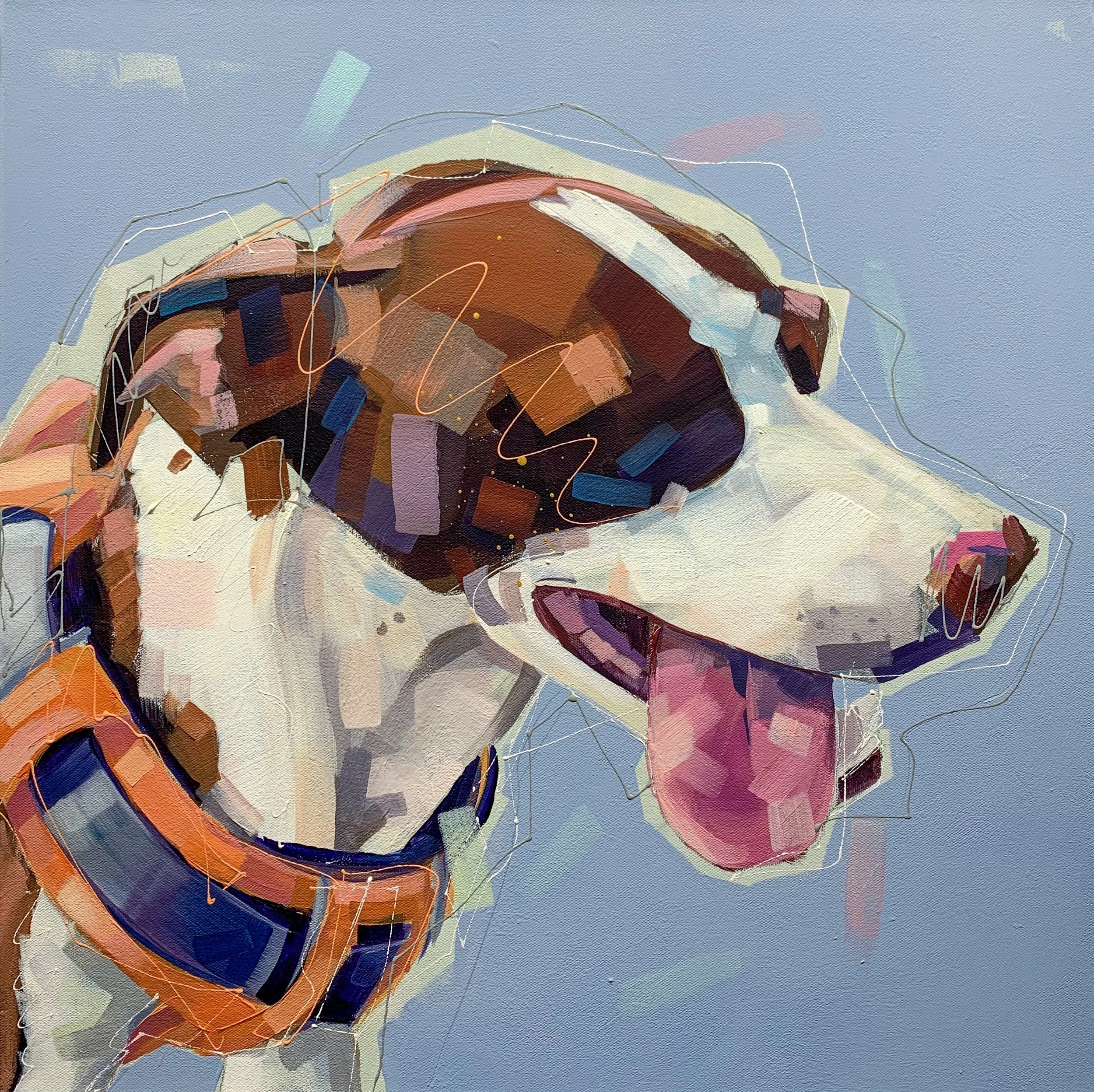 There are many moments that are captured through photography or in memories that inspires me. I came across an image captured by photographer Marko Pekic who allowed me to paint an expression of that moment. The story of this expression is an abstract depiction of the profound bond between a dog and its owner, captured during a car ride.