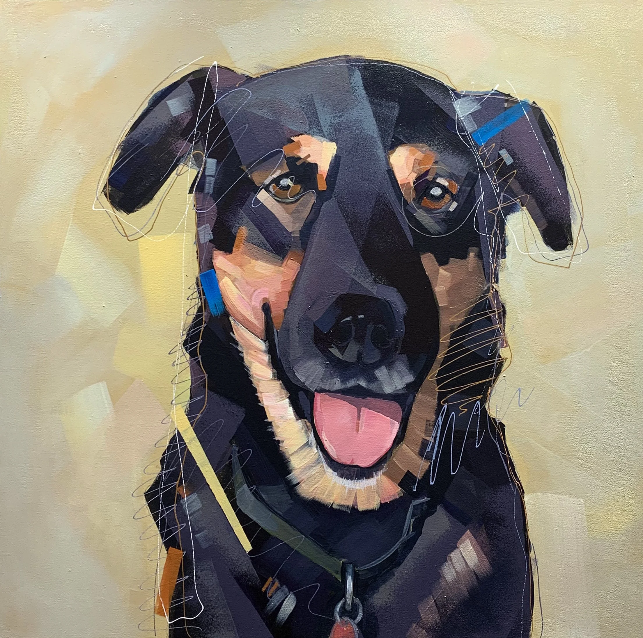 My dog Snickers. On the wall and owning the house. 40" x 40" acrylic on canvas